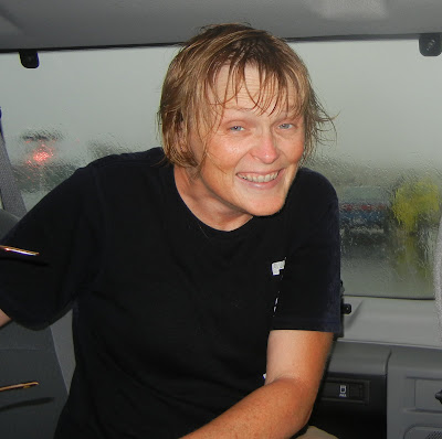 We left Wharf Wraps at Eastern Passage and drove to Peggy's Cove but there was quite a change in the weather on the way. By the time we got there it was pouring rain and the wind was whipping. Chicken Grandma Foley didn't even get out of the car but the rest of the crew at least ventured a quick look at the lighthouse and rocky coastline.